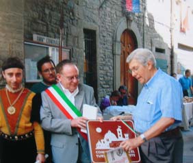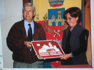 Consegna al Sindaco di Predappio(FC) la targa di "Comune Amico del Turismo Itinerante" dal parte del Presidente dell'Associazione, Alberto Cervelli